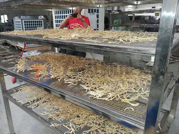 2、在入蘿卜絲烘干機前使用風(fēng)扇進行脫水,有利于烘干效率。