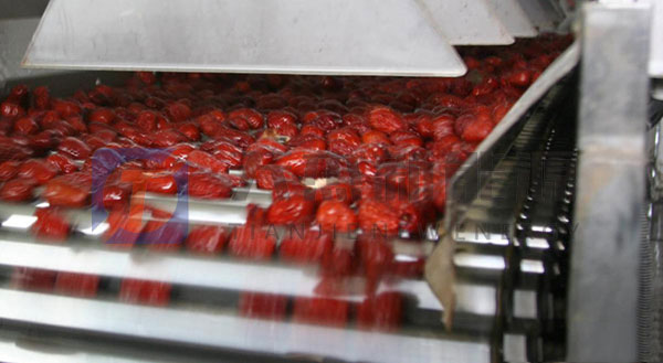 紅棗進(jìn)入紅棗烘干設(shè)備后,先關(guān)閉門窗和排氣孔,然后開始加溫。一般要求6~8小時內(nèi)升溫到50℃~55℃,適宜溫度為51℃~52℃,使果肉內(nèi)受熱均勻。注意升溫速度不要過快,防結(jié)殼。待棗溫達(dá)35℃~40℃時,果肉變軟,手捏時果面出現(xiàn)皺紋即可。