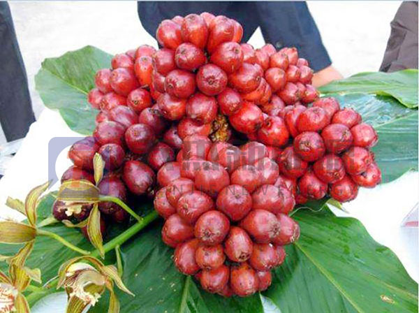 當(dāng)草果由鮮紅轉(zhuǎn)為紫紅色,種仁表面由白色變?yōu)樽睾稚?,口嚼后有濃烈辛辣味時(shí),草果即視為成熟,可以采收加工。采收草果果穗時(shí),用鐮刀從果穗基部割下整個(gè)果穗,在烘干前再將草果果實(shí)單個(gè)摘下,摘草果時(shí)可用手逐個(gè)將其撕下,也可以用剪刀剪取,但需要帶一點(diǎn)果柄,避免撕傷到果實(shí)基部,這樣在烘干時(shí)果實(shí)不易破裂,確保產(chǎn)品品質(zhì)。