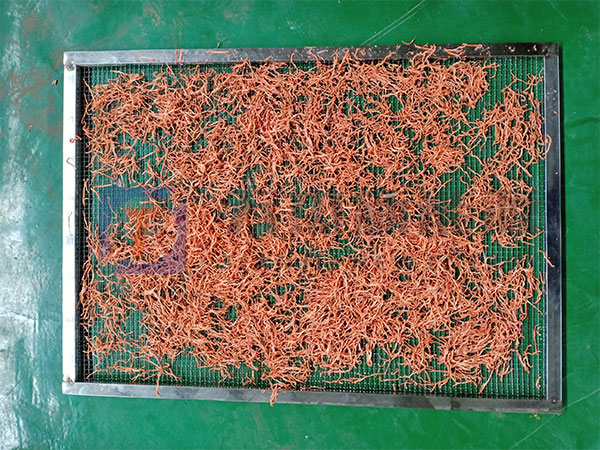 2.機械切粒。將處理好的胡蘿卜再用清水沖洗一次,之后勻稱地送入切菜機切粒。常制作的規(guī)格為10、8與5毫米三種。