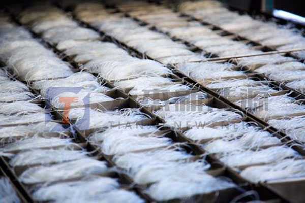 粉絲烘干房是通過(guò)壓縮空氣進(jìn)行升溫(可調(diào)溫度為8℃-75℃),能夠比較準(zhǔn)確的控制烘干溫度濕度,烘干后的粉絲不變色,口感好,烘干過(guò)程不會(huì)斷,干度均勻。設(shè)備投資少,運(yùn)行電費(fèi)低,生產(chǎn)效率高,自動(dòng)化不用人員看管。